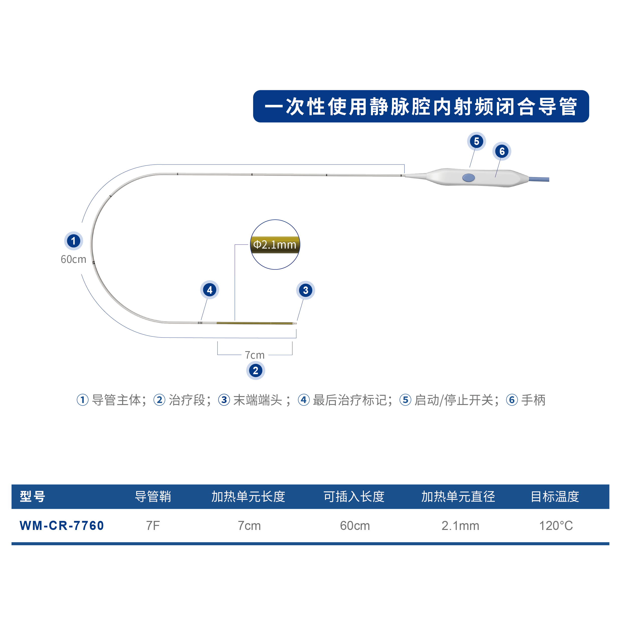 VeinPro®静脉腔内射频闭合系统是由一次性使用静脉腔内射频闭合导管和静脉腔内射频闭合发生器组成,适用于下肢大隐静脉曲张(限于浅静脉)的治疗。