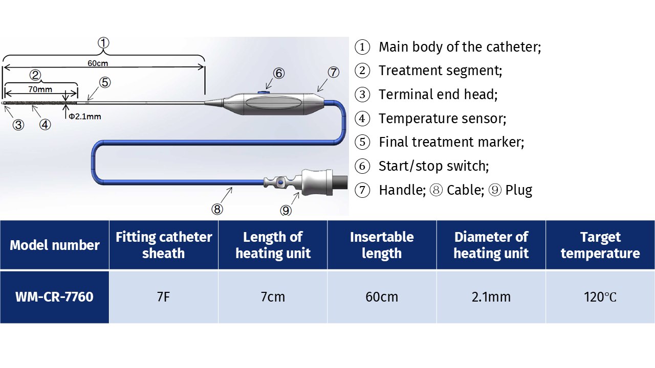 VeinPro™ endovenous RF closure system consists of a single-use intravenous RF closure catheter and an endovenous RF closure generator. It is suitable for the treatment of varicose veins of lower limbs.