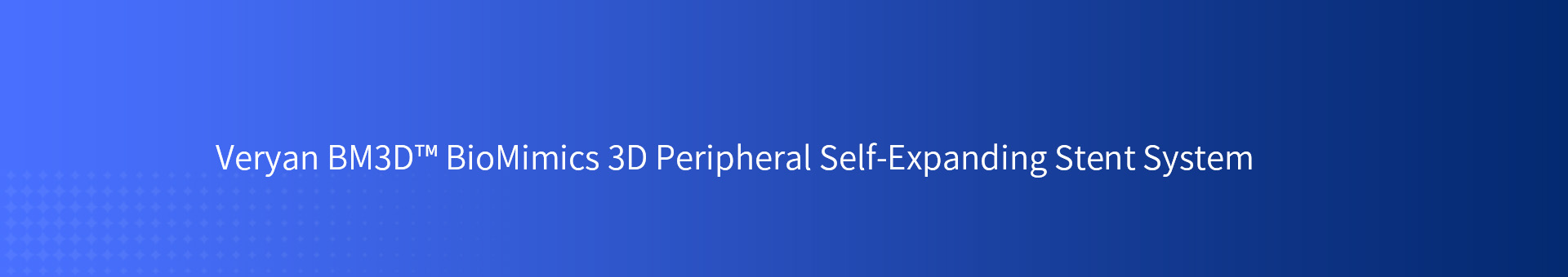 Veryan BM3D™ BioMimics 3D Peripheral Self-Expanding Stent System is designed for the treatment of symptomatic de novo lesions in the native superficial femoral artery (SFA) and/or the proximal popliteal artery.